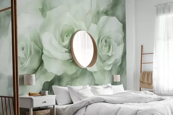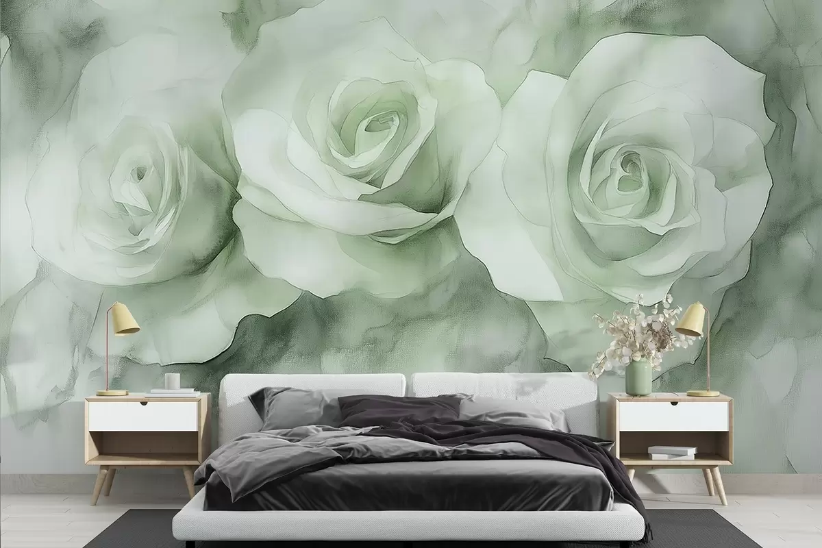 Fototapetak Gyönyörű rózsák, akvarell stílus, zöld színek, bohém stílusban Nr. w02492v2
