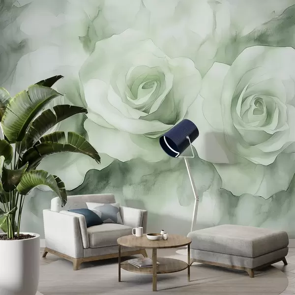 Fototapetak Gyönyörű rózsák, akvarell stílus, zöld színek, bohém stílusban Nr. w02492v2