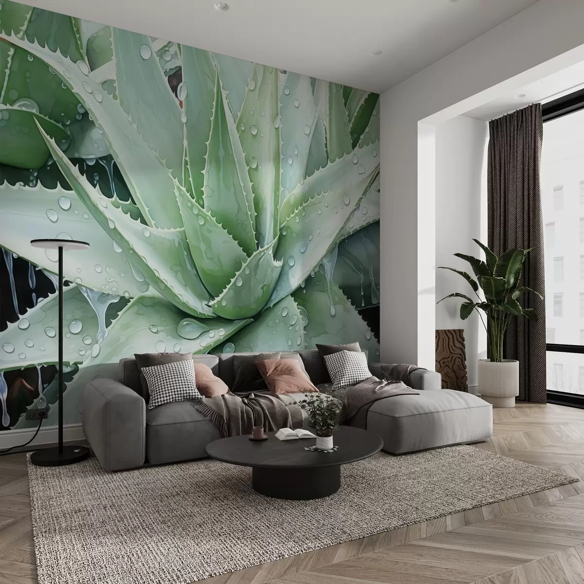 Fototapetak Harmatcseppek az aloe utánzatán akvarellfestékkel Nr. w02503