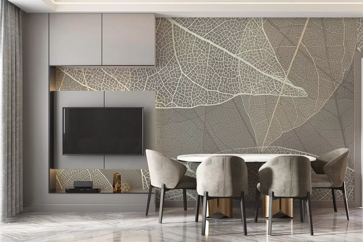 Fototapetak közelkép a levelek erezetével, meleg szürke tónusokban Nr. w02520v2