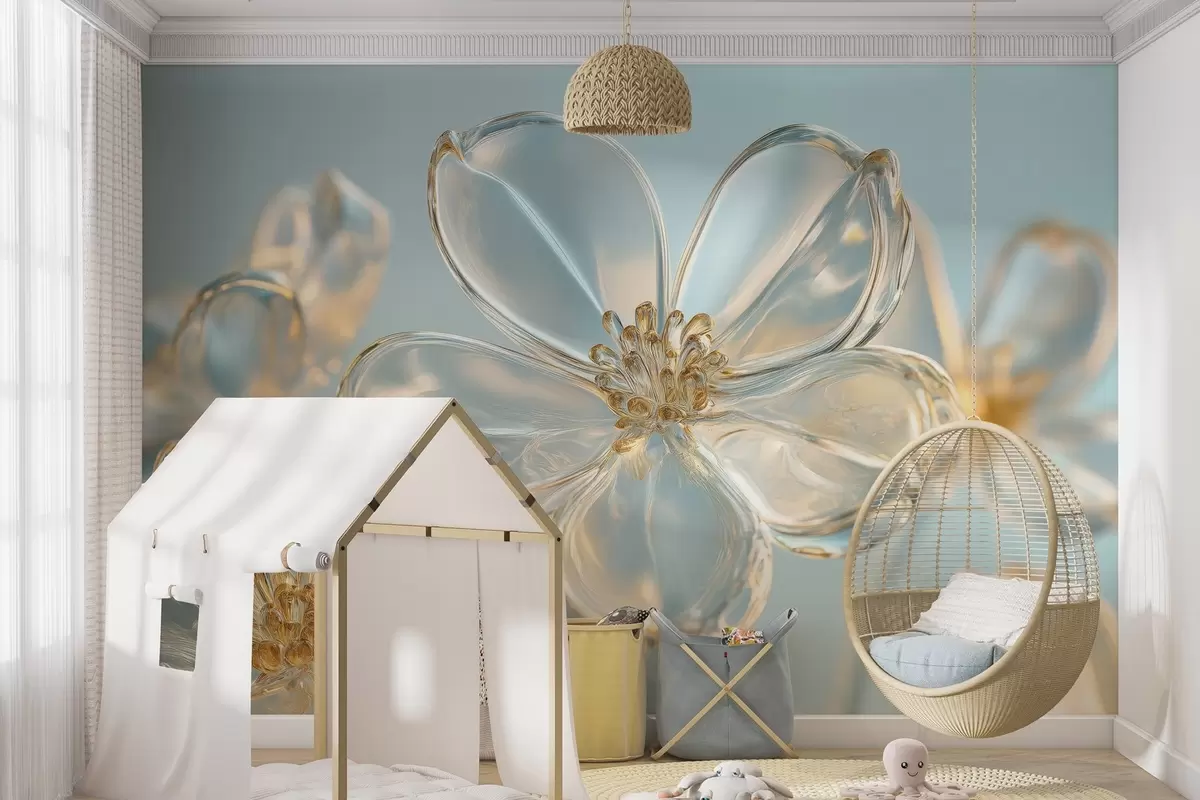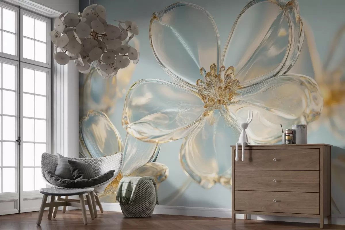 Fototapetak nagy üveg stílusú virágok kék árnyalatokban Nr. w02521