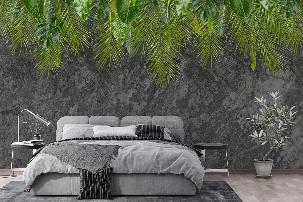 Fototapetak trópusi levelek a kőutánzat hátterén Nr. w02547