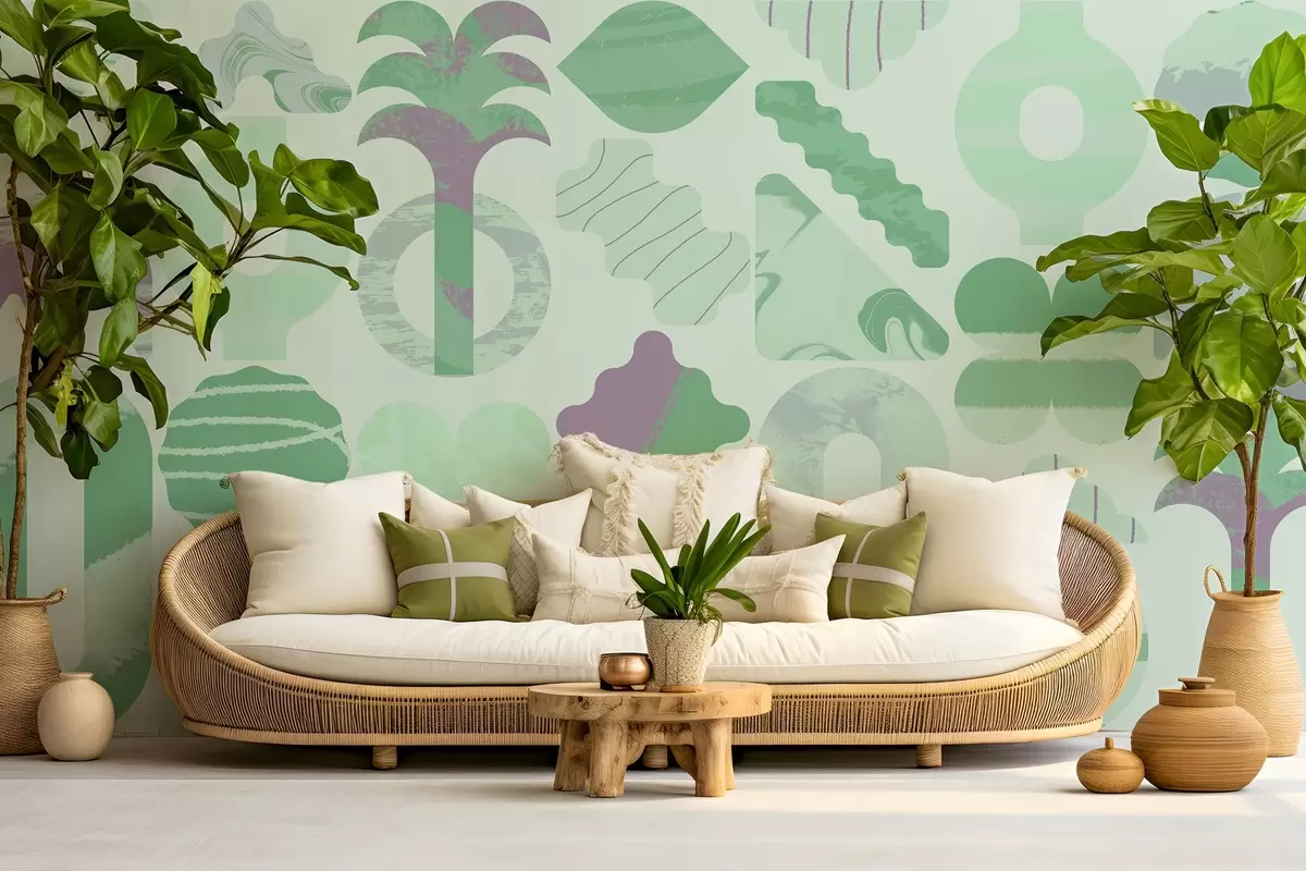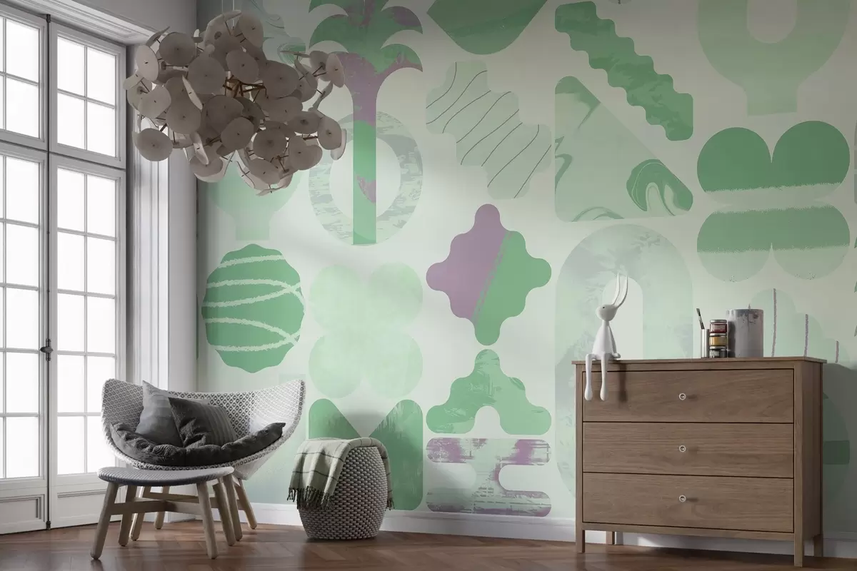 Fototapetak különböző érdekes formák, modern geometria zöld színekben Nr. w02550v2