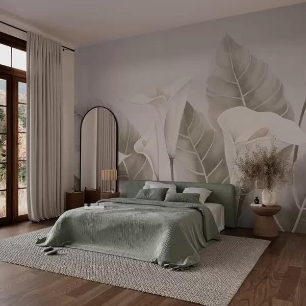 Fototapetak kála liliomok levelek hátterén Nr. w02568