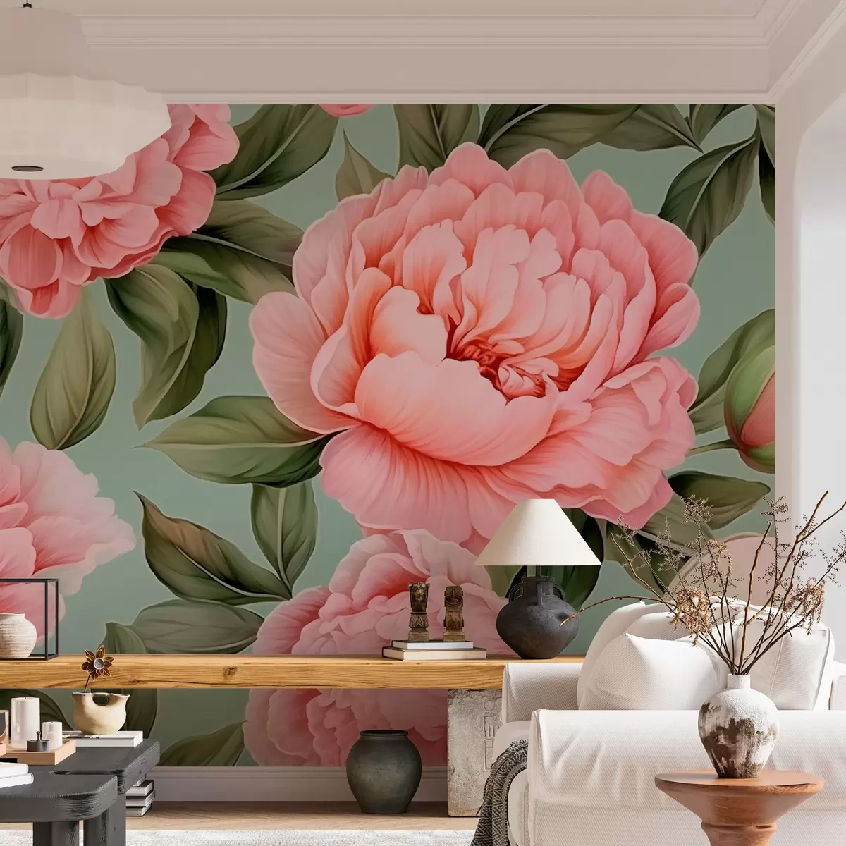 Fototapetak Rózsaszín bazsarózsa levelekkel Nr. w02570