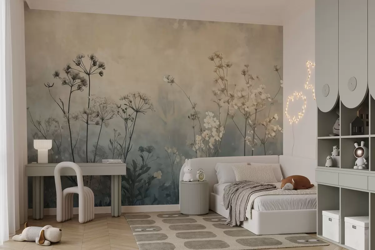 Fototapetak öko-stílusú tapéta vadvirágokkal és növényekkel, texturált háttérrel Nr. w02685