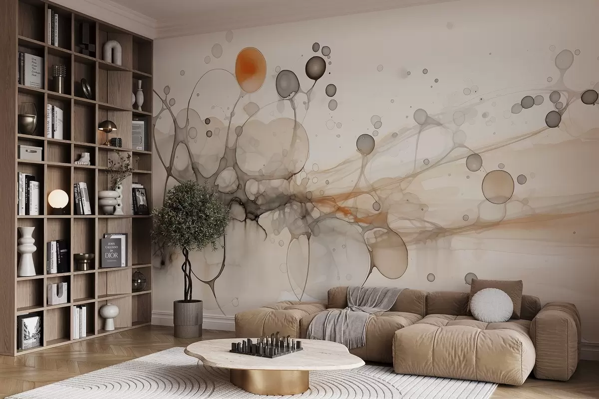Fototapetak Absztrakció, minimalizmus, tusművészet, folyékony, bézs és szürke színek Nr. w02750