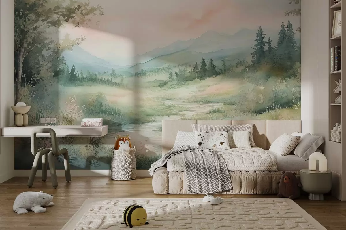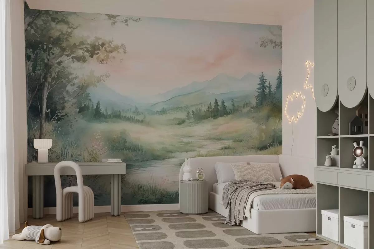 Fototapetak akvarell táj, ösvény és hegyek Nr. w02764