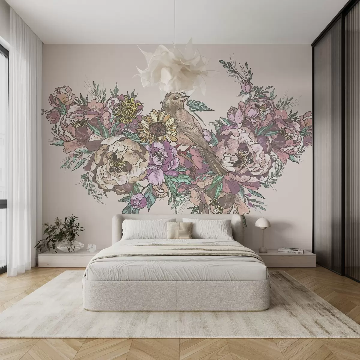 Fototapetak Vintage madár és virágos illusztráció Nr. w02833