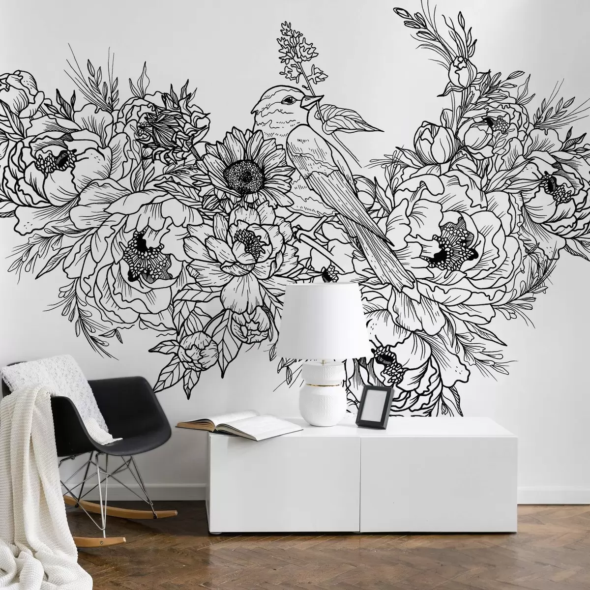 Fototapetak Részletes vonal művészet madár és virágos elrendezése Nr. w02833v1