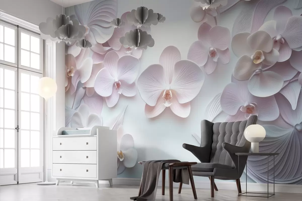 Fototapetak Finom archidia virágok világos színekben 3D utánzással Nr. w02912