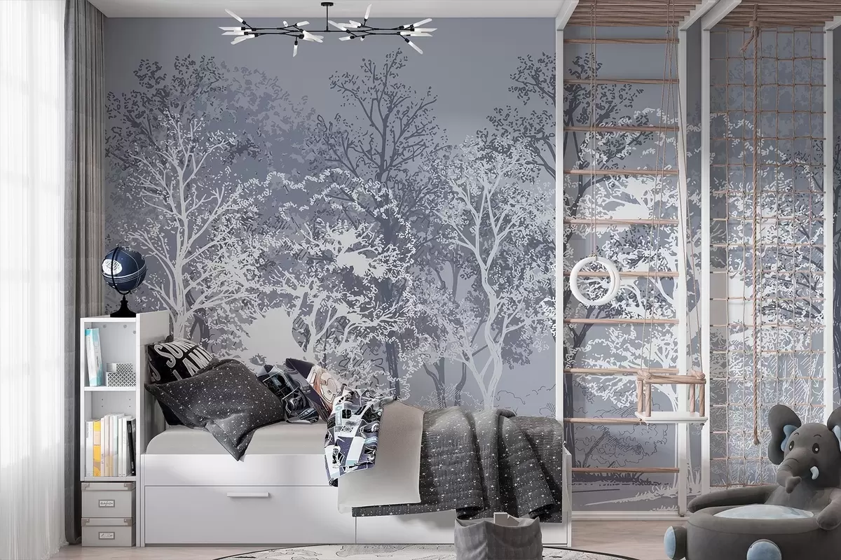 Fototapetak Fák az erdőben, minimalizmus, természet, kék színpaletta, kék színpaletta Nr. w02930v2
