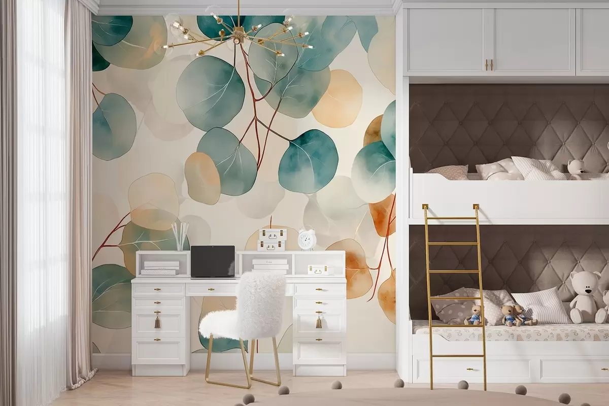 Fototapetak Akvarell stílusú eukaliptusz rajz, lágy pasztell színek, virágos Nr. w02938