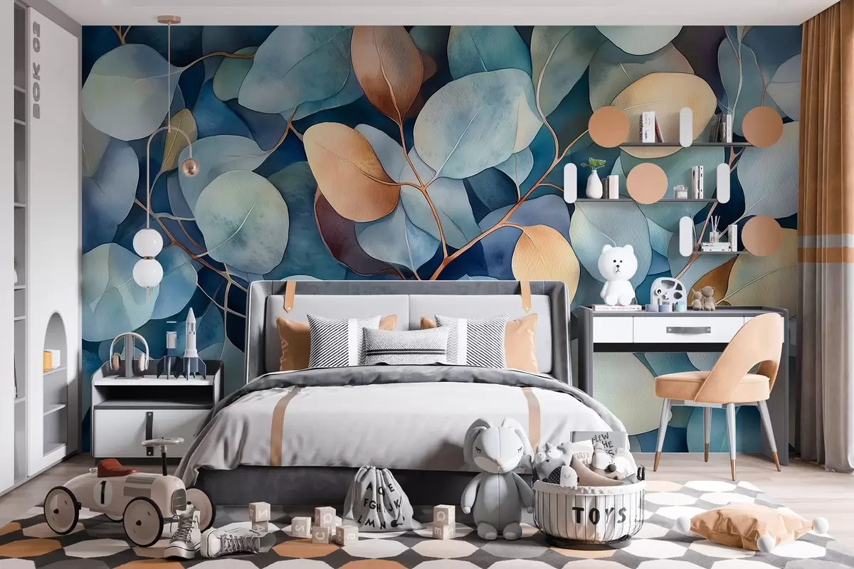 Fototapetak Gyönyörű eukaliptusz levelek, virágos minta, akvarell stílusú rajz Nr. w02939