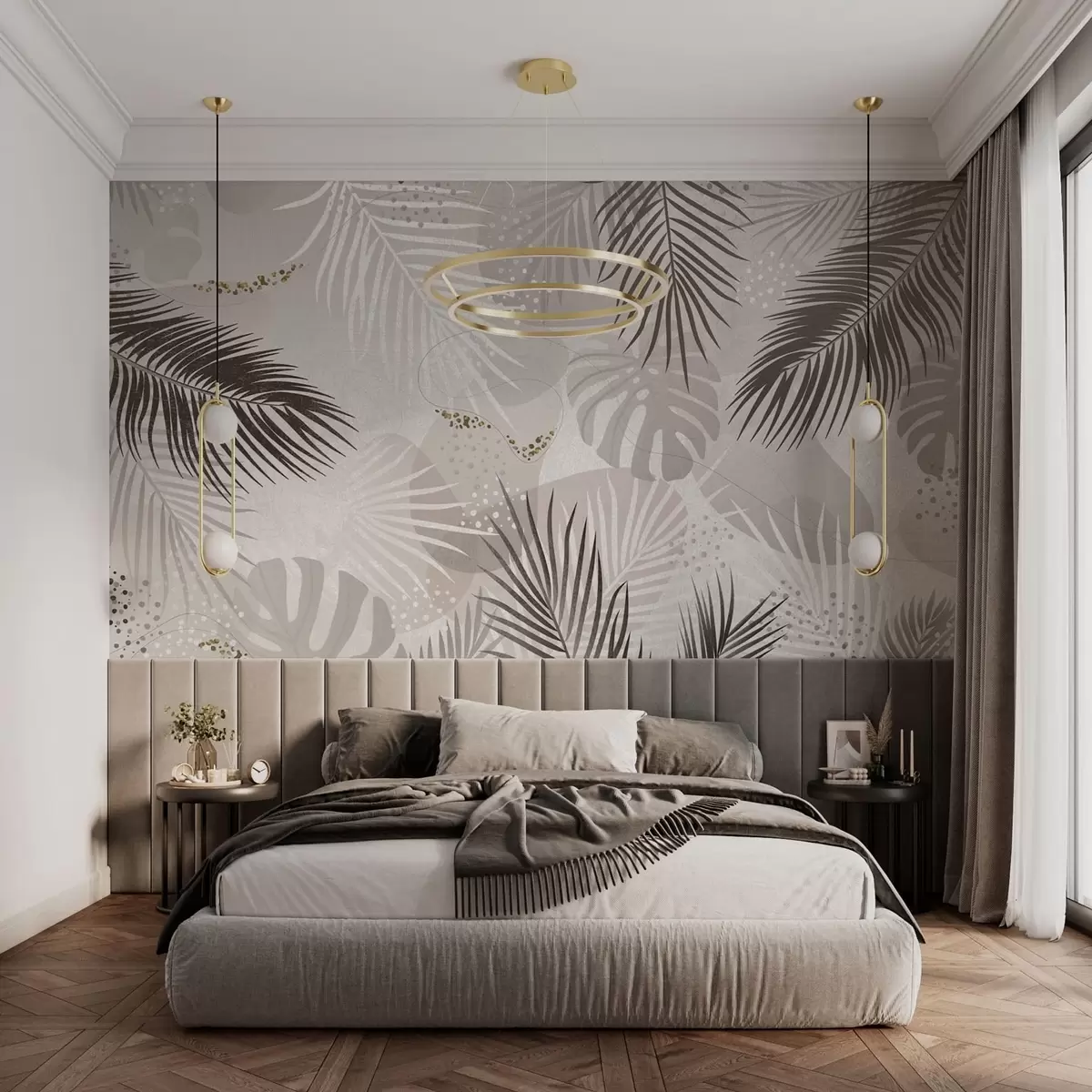 Fototapetak Absztrakt trópusi levelek és vonalak trend Nr. w03060v1