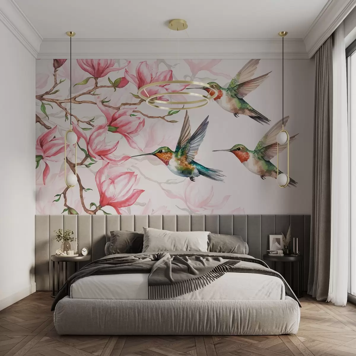 Fototapetak Virágzó magnóliák és kolibrik Nr. w03104