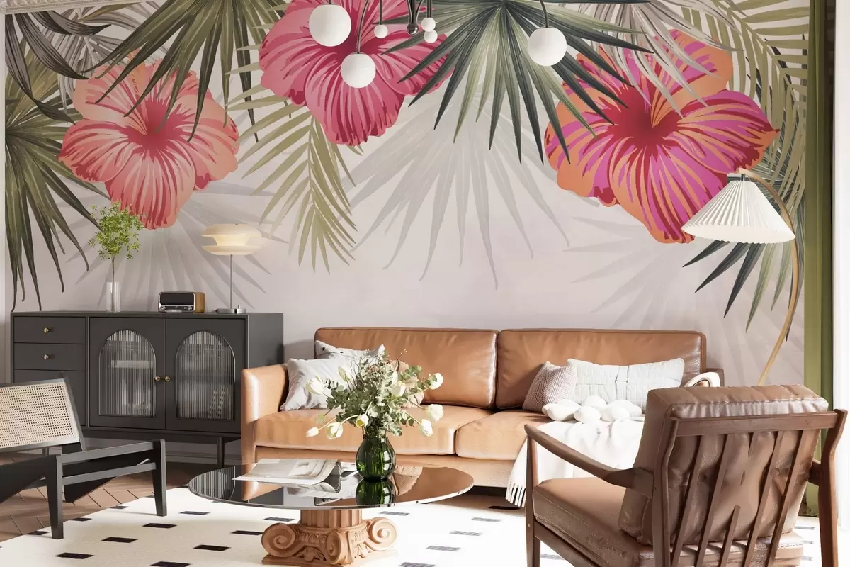 Fototapetak Trópusi levelek és virágok felülről Nr. w03106