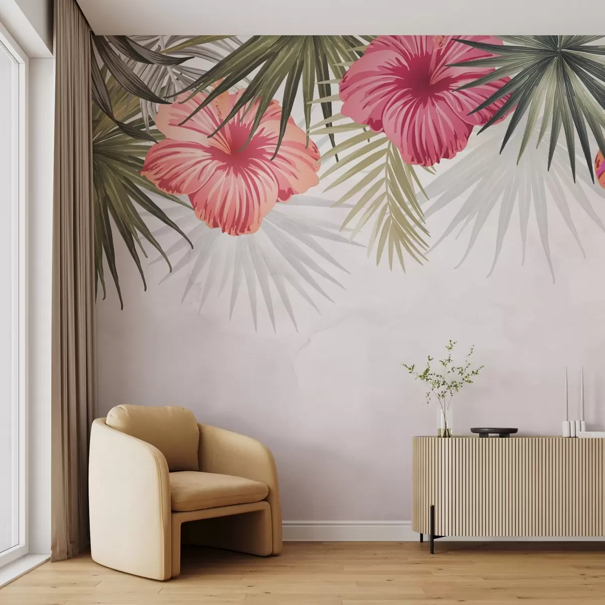 Fototapetak Trópusi levelek és virágok felülről Nr. w03106