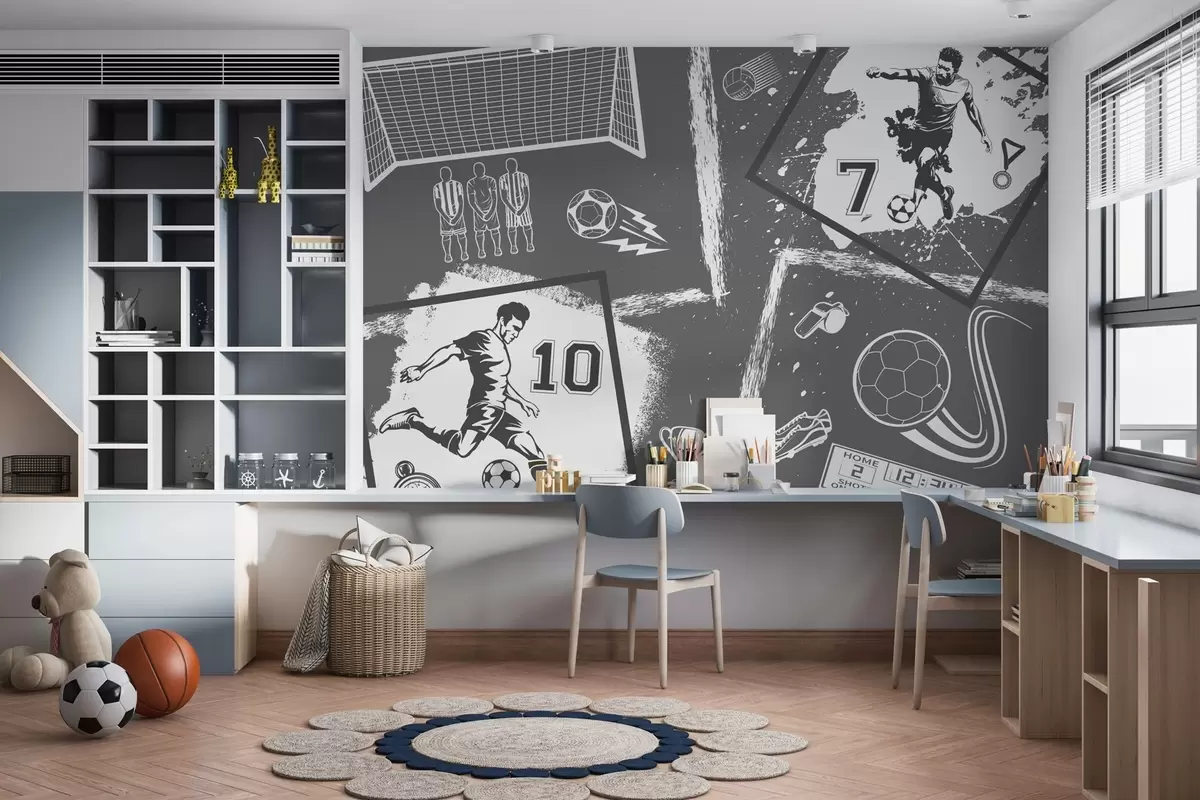 Fototapetak Labdarúgók, labda és egyéb futball attribútumok szürke tónusokban Nr. w03122v1