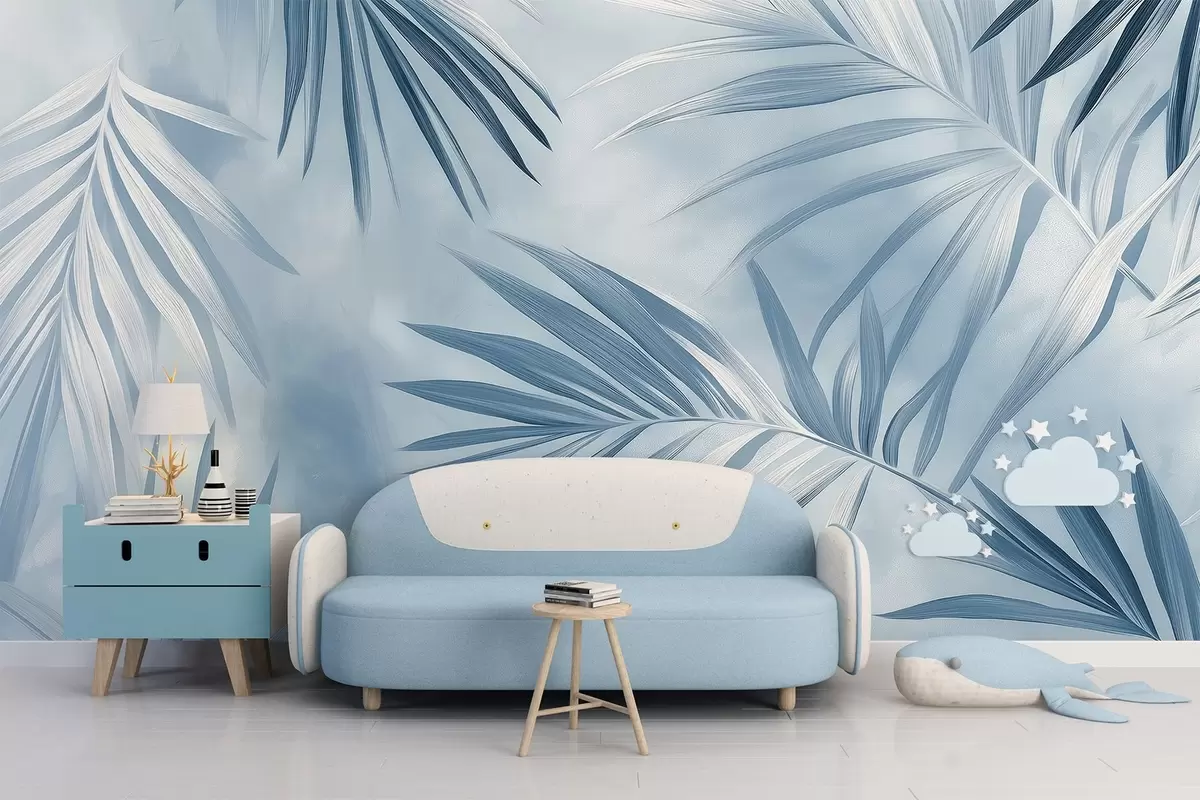 Fototapetak Trópusi levelek absztrakció, pálmafa, kék színpaletta Nr. w03153