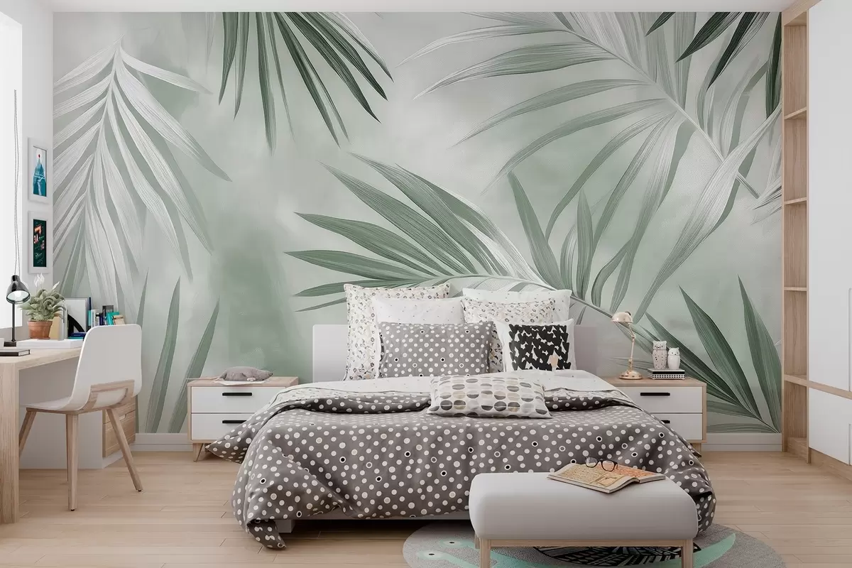 Fototapetak Trópusi levelek absztrakció, pálmafa, zöld színpaletta Nr. w03153v2
