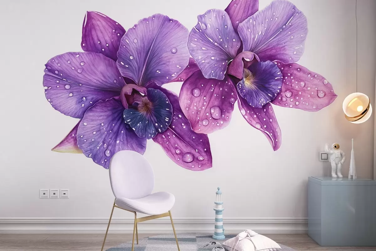 Fototapetak Gyönyörű orchidea virágok, akvarell stílusú rajz, ibolya színek Nr. w03164