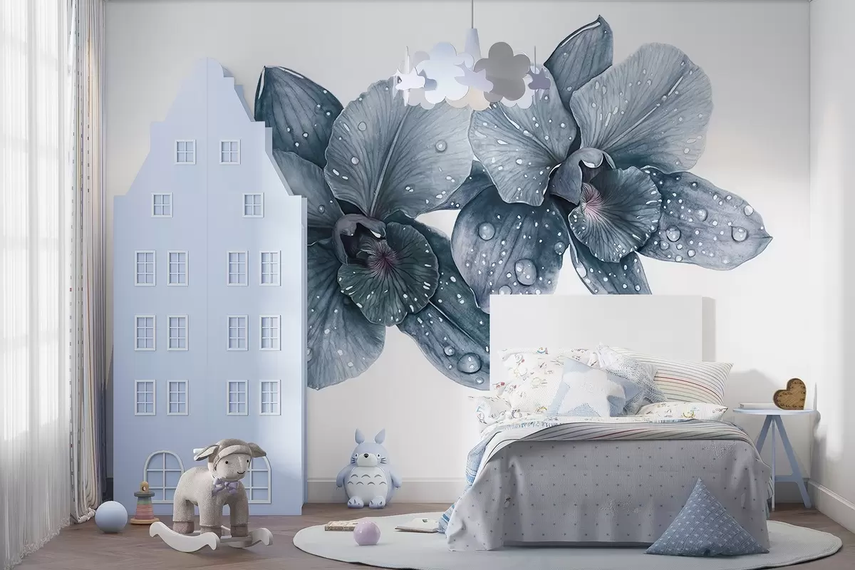 Fototapetak Gyönyörű orchidea virágok, akvarell stílusú rajz, kék színek Nr. w03164v2