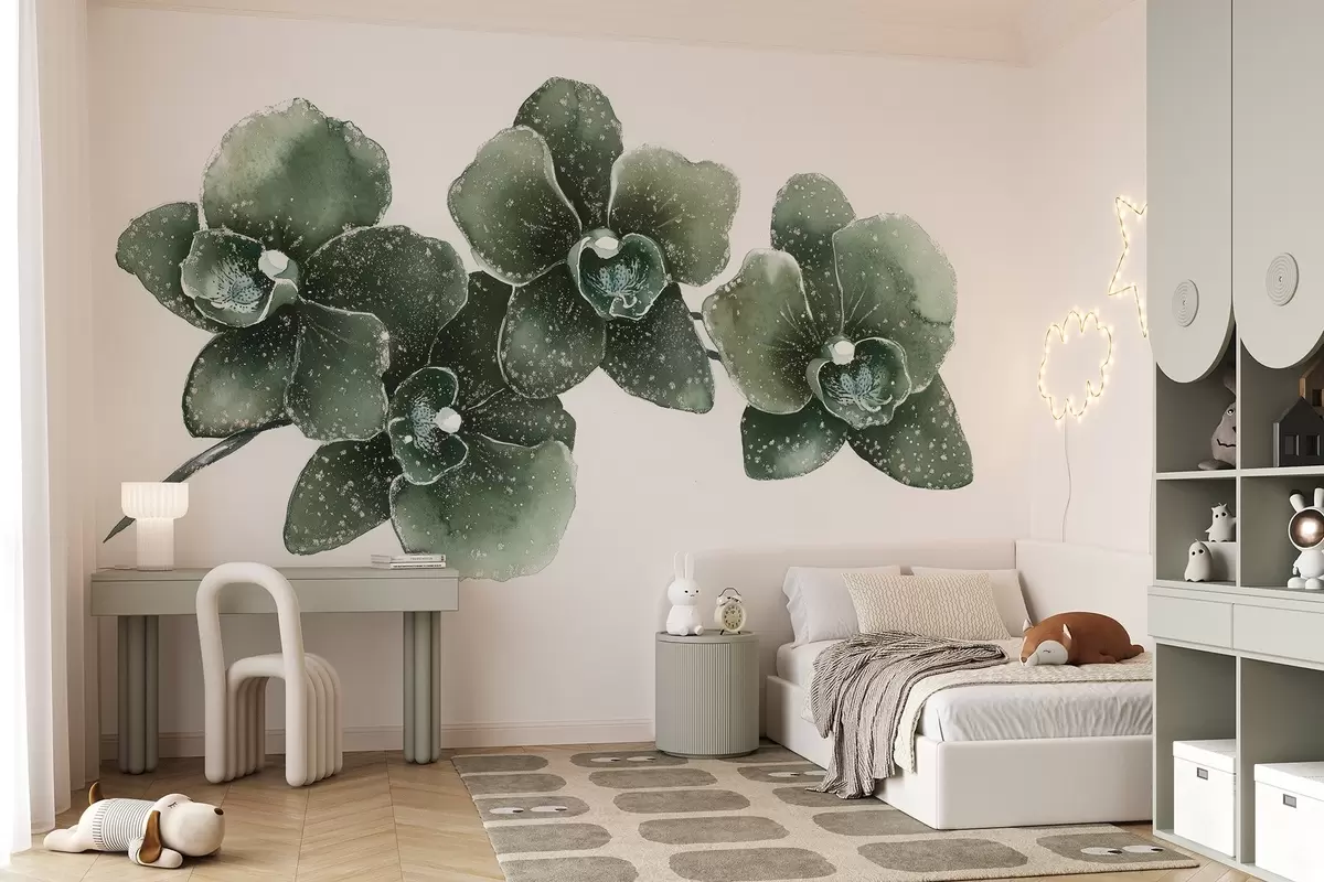 Fototapetak Orhid virág ág, akvarell stílus, virágos, zöld színek Nr. w03165v1