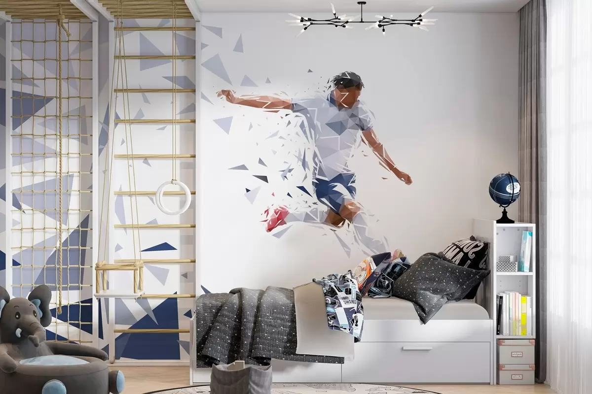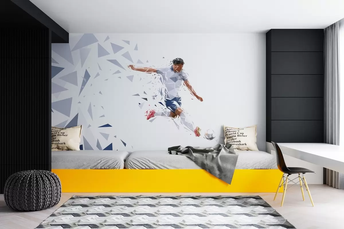 Fototapetak Dinamikus labdarúgó, alacsony pólóstílusban, a labdát ütögeti Nr. w03289