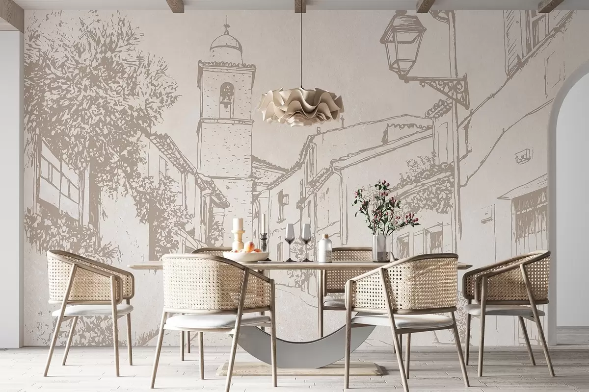 Fototapetak Városi utca, gyönyörű építészet, épületek, mediterrán, bézs színek Nr. w03346