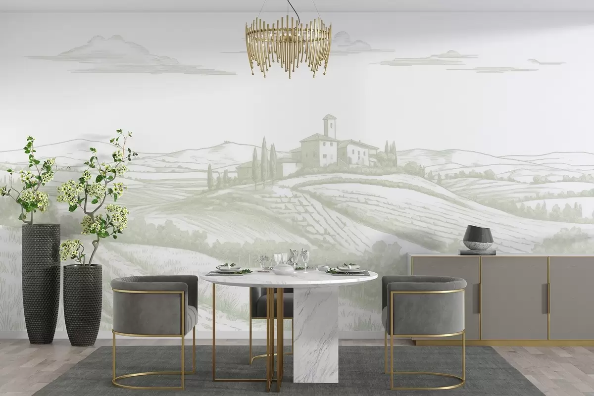 Fototapetak Toszkána tájak, Olaszország, szőlőskertek, természet, régi kastély, zöld színek Nr. w03349v2