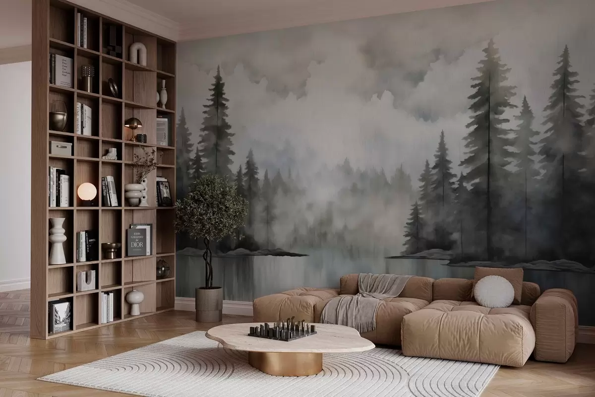 Fototapetak Erdő, tó és felhős égbolt akvarell stílusban Nr. w03387