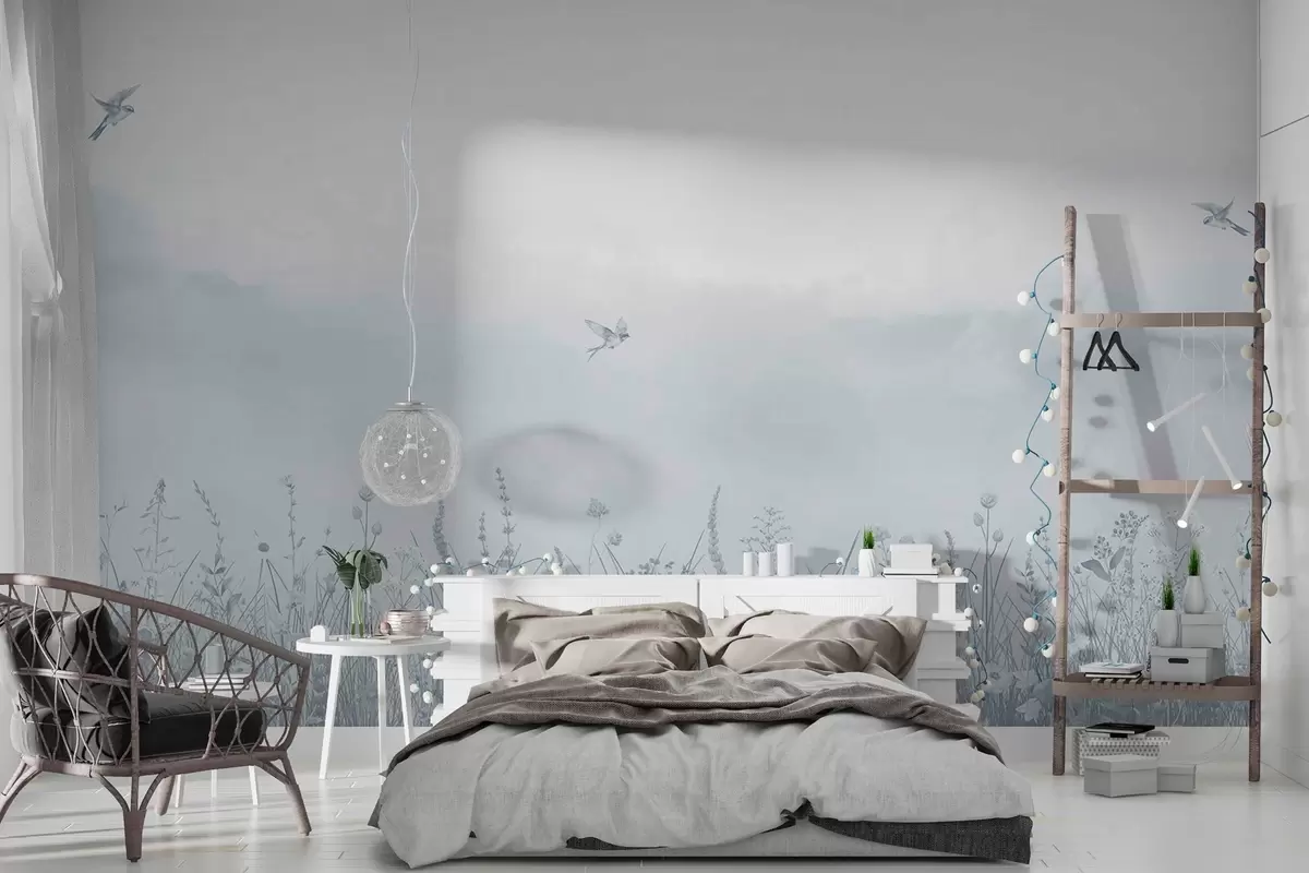 Fototapetak Vadvirágok és ködös égbolt kék tónusokban Nr. w03391v1