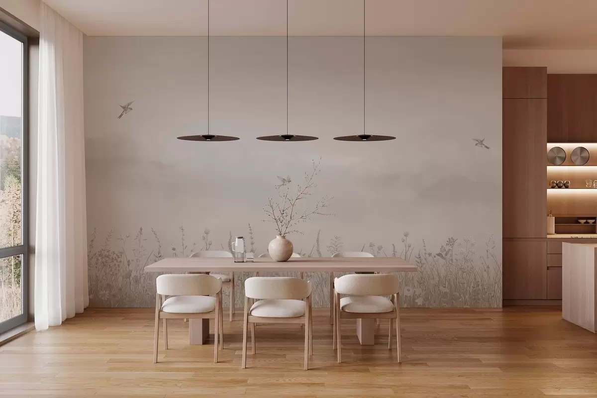 Fototapetak Vadvirágok és ködös égbolt bézs tónusokban Nr. w03391v2