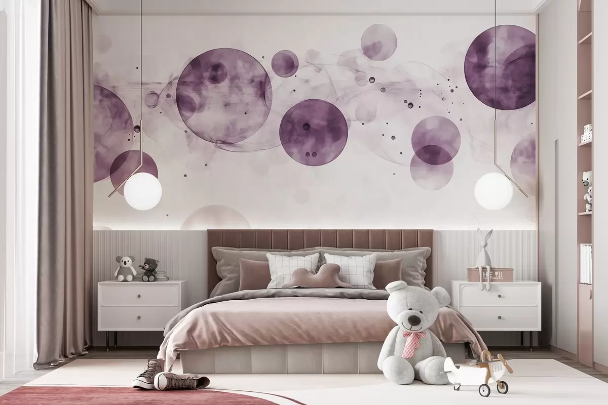 Fototapetak Akvarell stílusú körök, absztrakció, éteri, folyékony művészet, lila színek Nr. w03405v2