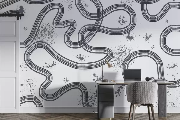 Fototapetak Line art rajz, festékfröccsenések, minimalizmus, szürke szín Nr. w03408v2