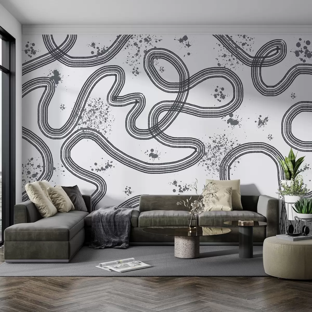 Fototapetak Line art rajz, festékfröccsenések, minimalizmus, szürke szín Nr. w03408v2