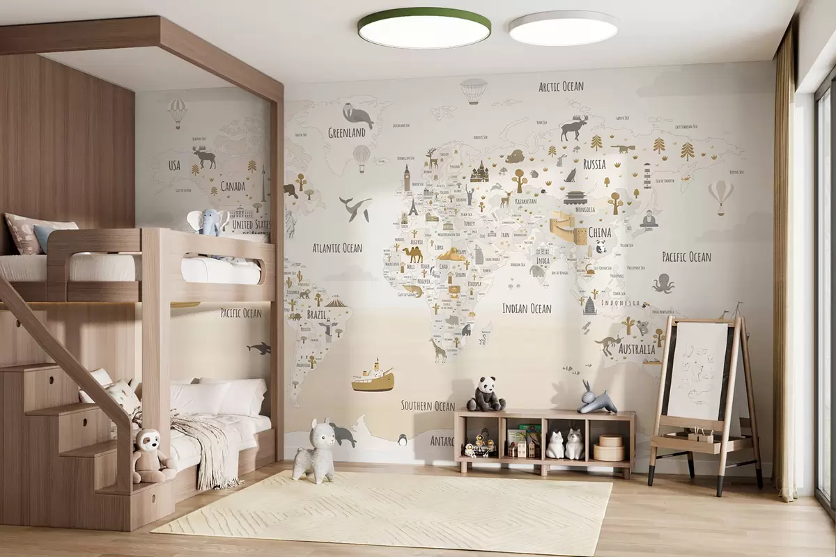 Fototapetak Világtérkép állatokkal és nevezetességekkel Nr. w03410v1