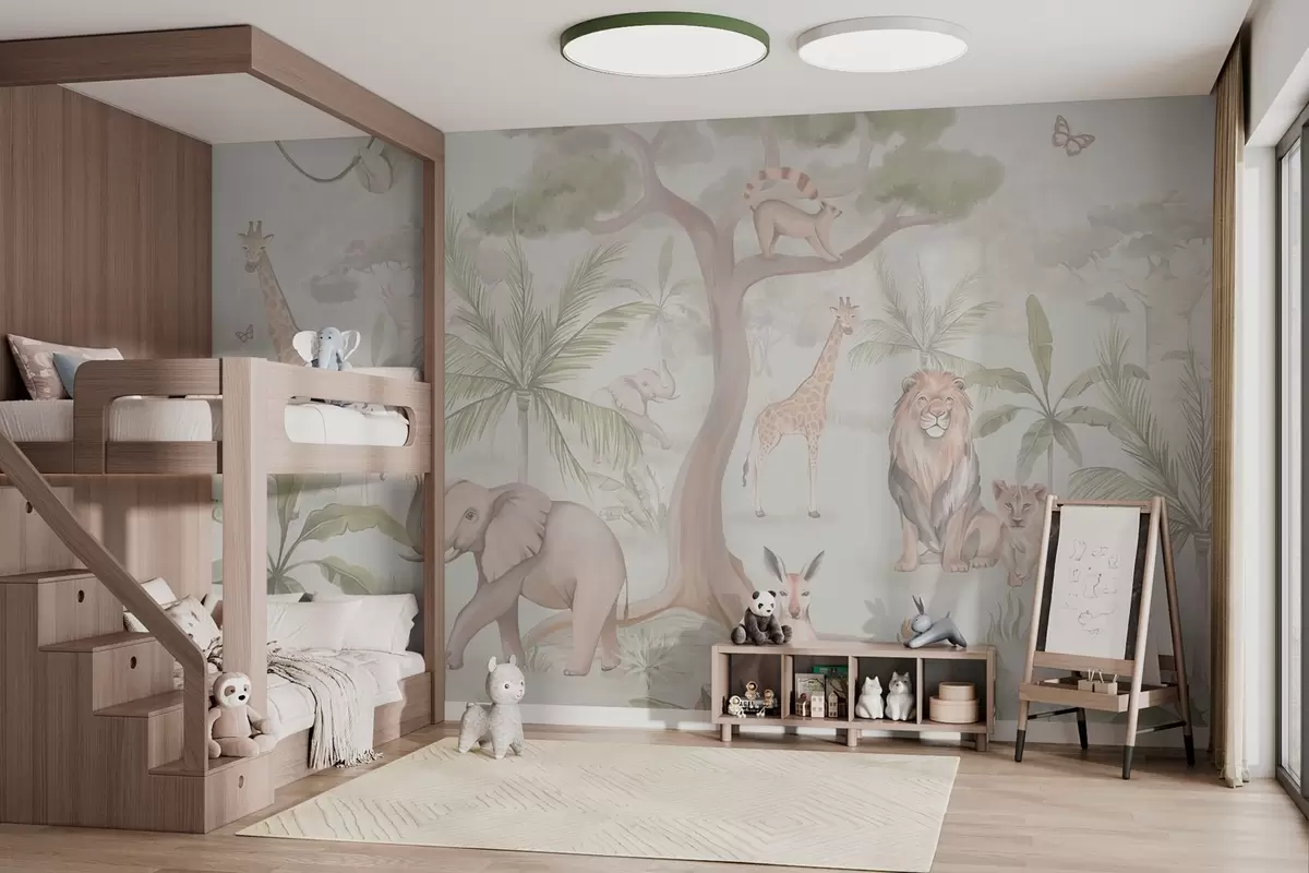 Fototapetak Panoráma dzsungel állatokkal világos színekben Nr. w03444v1