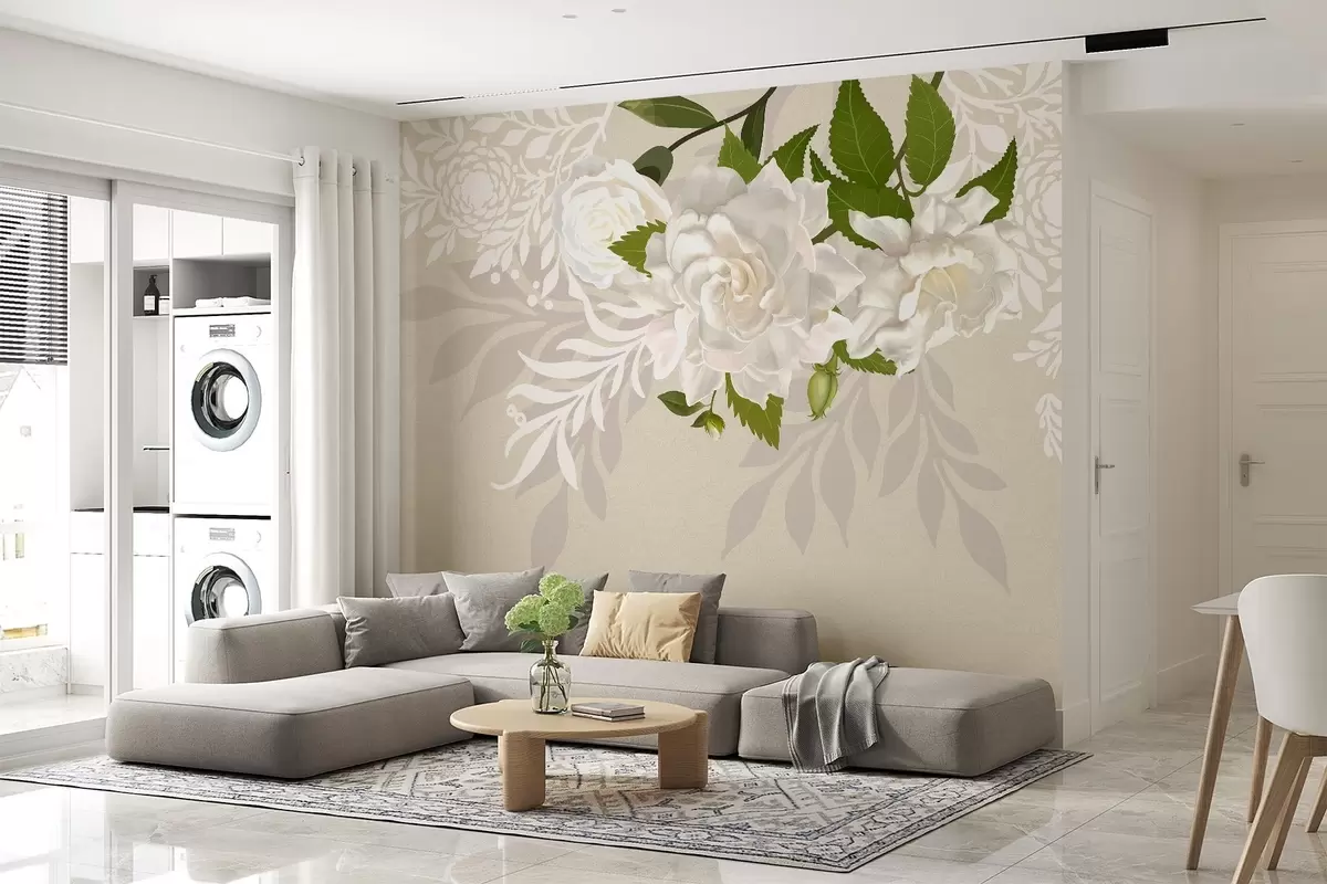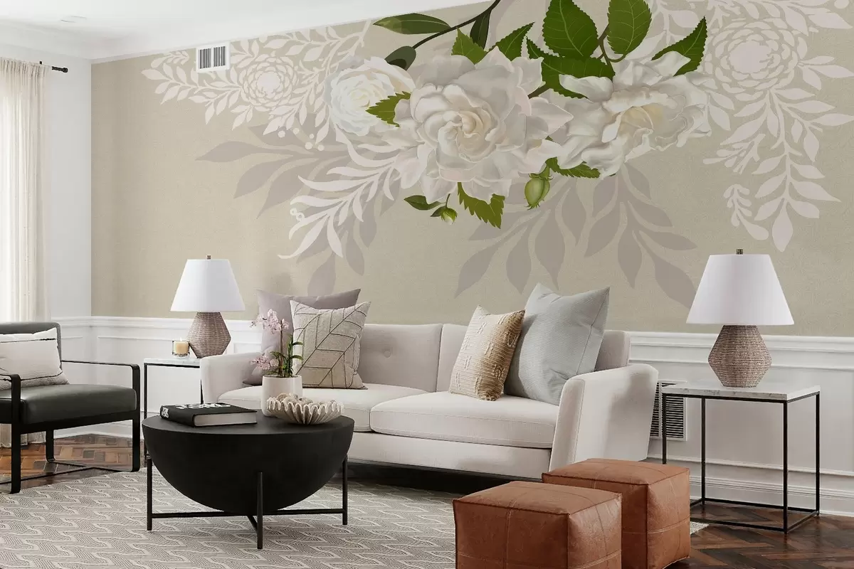 Fototapetak fehér rózsák bézs mintás háttéren Nr. w03453