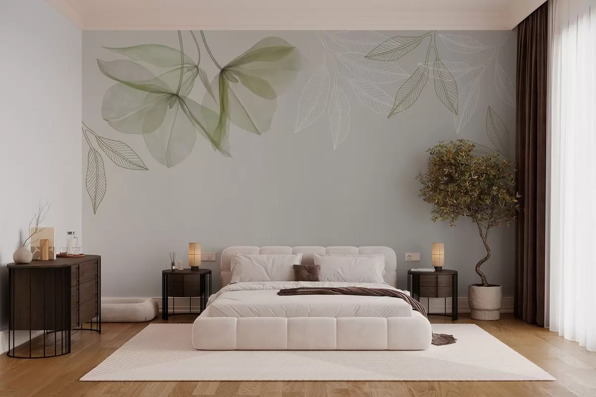 Fototapetak finom áttetsző virágok és levelek khaki árnyalatban Nr. w03616v2