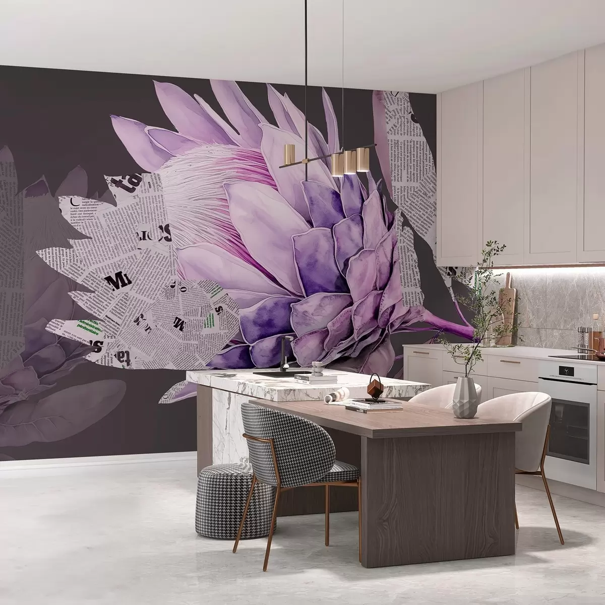 Fototapetak Protea virágok, újságművészet, virágos, trópusi, sötét háttér, lila színek Nr. w03667v2