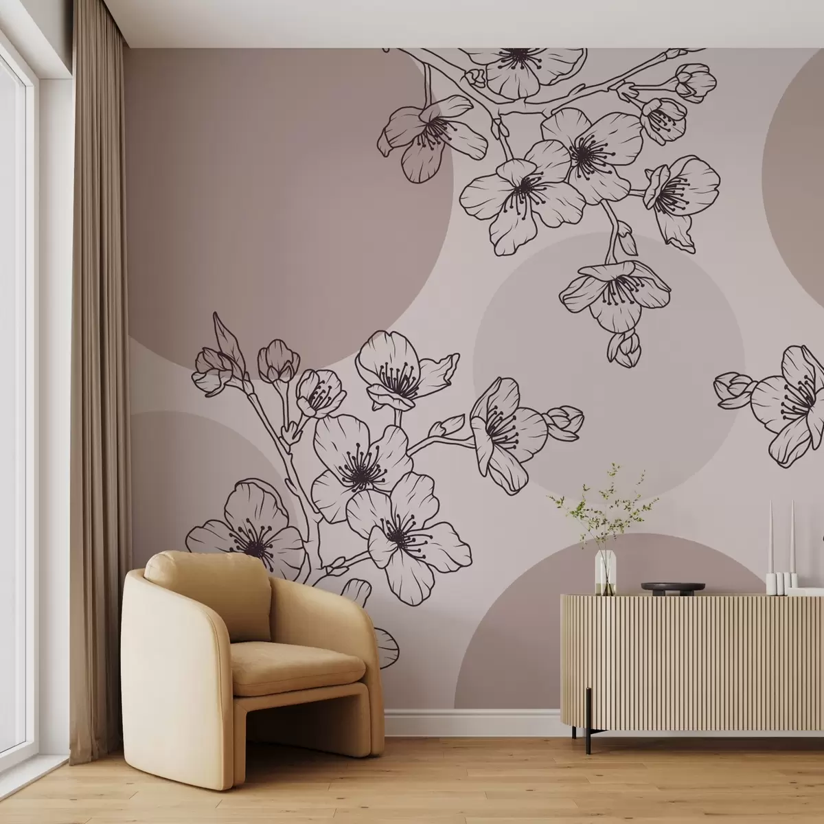 Fototapetak Ágak virágokkal színes körökön barna tónusú ágakkal Nr. w03712