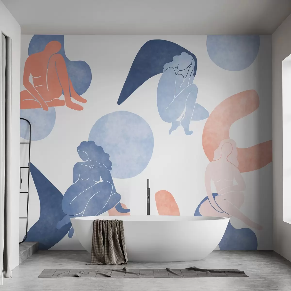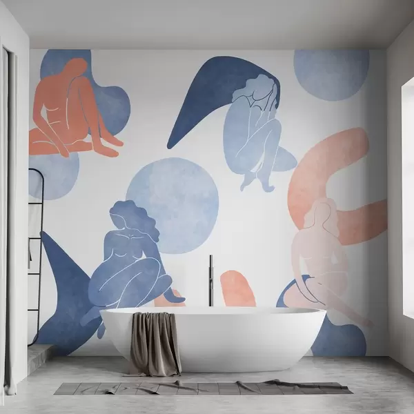 Fototapetak Geometrikus absztrakciók női sziluettekkel, boho stílus, kék, bézs, rózsaszín Nr. w03753v1