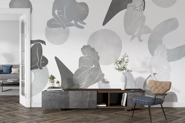 Fototapetak Geometrikus absztrakciók női sziluettekkel, boho stílus, szürke színek Nr. w03753v5