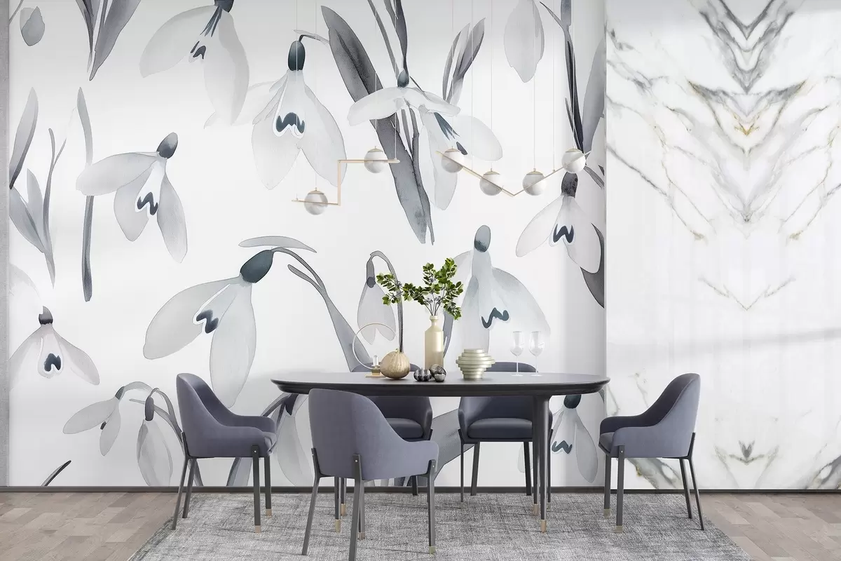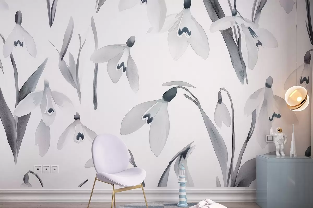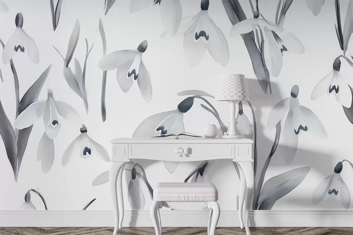 Fototapetak Hóvirágok virágok akvarell stílusban, szürke színekben Nr. w03754v1