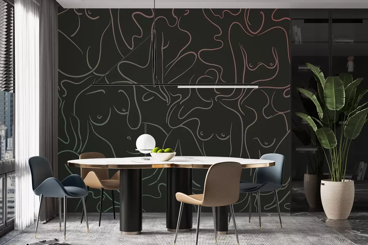 Fototapetak Vonalrajz anatómiai sziluettek, absztrakció, sötét háttér Nr. w03755v2