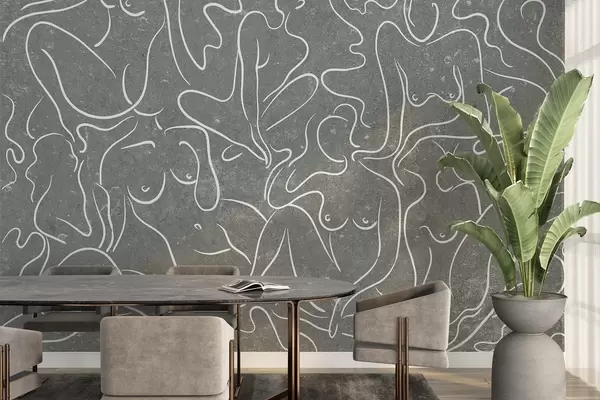 Fototapetak Vonalrajz anatómiai sziluettek, absztrakció, szürke háttér Nr. w03756v1