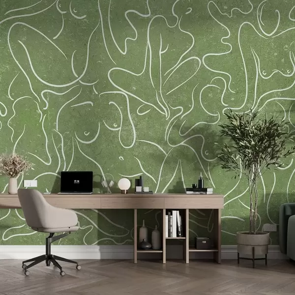 Fototapetak Vonalrajz anatómiai sziluettek, absztrakció, zöld háttér Nr. w03756v2