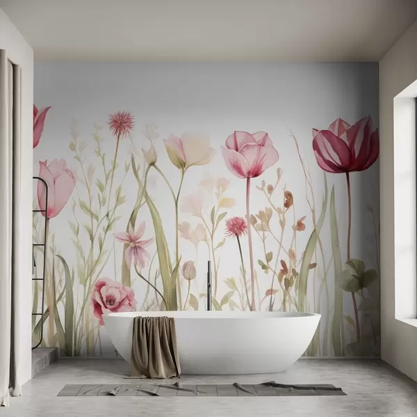 Fototapetak Meadow Softness,Tulipánok, virágok, szárak, levelek, vadon élő növények Nr. w03785